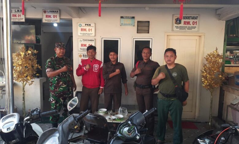 Jakarta Barat || Koranprogresif.id, Dalam rangka menciptakan lingkungan aman dan kondusif, Babinsa Koramil 01/Tamansari Kodim 0503/Jakarta Barat, Sertu Supriyanto melakukan Komunikasi Sosial (Komsos) dengan Danrtu Linmas Rw. 01 bapak Aknum dan Warga yang sedang Kopdar di Pos RW.01, Glodok Jalan Kemenangan lll, Rw.01, Kelurahan Glodok, Kecamatan Tamansari, Jakarta Barat. Kamis (13/02/2025)