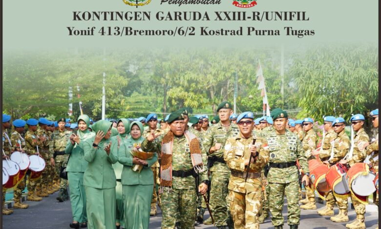 Lebanon || Koranprogresif.id, Seluruh prajurit Divif 2 Kostrad yang tergabung dalam Satgas Yonmek TNI Konga XXIII-R/Unifil Yonif 413/Bremoro/6/2 Kostrad dengan bangga telah menyelesaikan tugas mereka sebagai Pasukan Perdamaian Perserikatan Bangsa-Bangsa (PBB) di Lebanon. Tugas mulia yang mereka emban selama satu tahun ini menjadi salah satu kontribusi nyata Indonesia dalam menjaga perdamaian dunia.