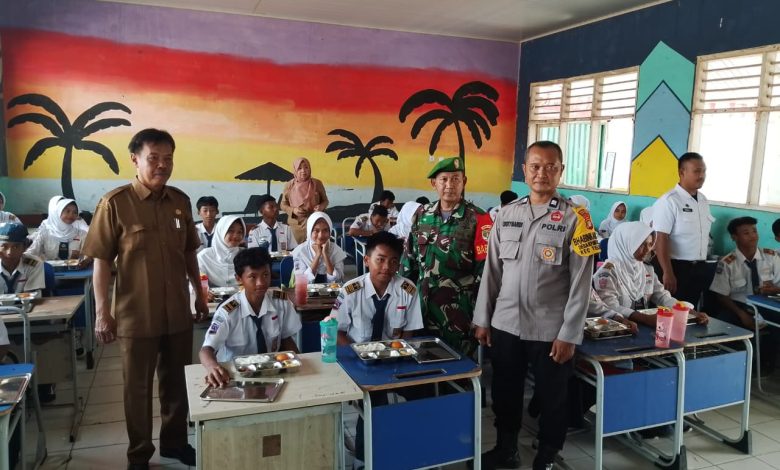 Tigaraksa,- Koramil 01/Teluknaga Kodim 0510/ Tigaraksa Dan Polsek Teluknaga.Monitoring langsung Pendistribusian Program Makan Bergizi Gratis (MBG) satuan pelayanan pemenuhan gizi (SPPG) Yayasan Bahari Indonesia Emas untuk SMPN 3 Teluknaga Dan SMAN 12 Kabupaten Tangerang.Senin (15/9/2025)