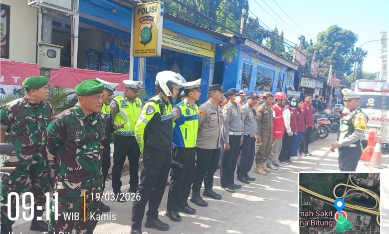 Tigaraksa – Anggota Koramil 02/Curug mengendalikan pengamanan Pos Pam Lebaran 1447 Hijriah di kawasan Bitung, Kecamatan Curug, Kabupaten Tangerang, Kamis pagi (19/3/2026).