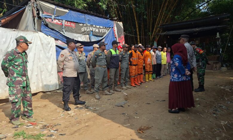 Pembersihan sampah yang ada di bantaran aliran sungai Ciliwung dari sampah dan puing ranting pohon yang menumpuk serta menghambat laju air sungai Ciliwung oleh personel Babinsa dan bantu oleh warga dan aparat terkait tiga pilar.
