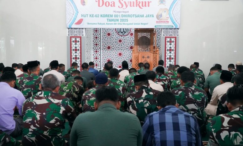 MADIUN || Koranprogresif.id – Jelang Hari Jadinya ke-62, Korem 081/DSJ menggelar do’a bersama di Masjid Jenderal Sudirman, Makorem, Jalan Pahlawan No. 50 Kota Madiun, Senin (24/11/2025).