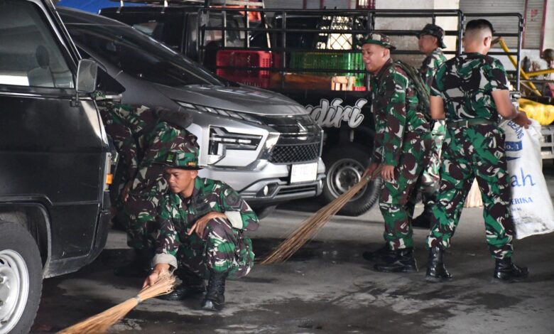 Korem 081/DSJ Kerahkan Prajuritnya Bersihkan Pasar Besar Kota Madiun