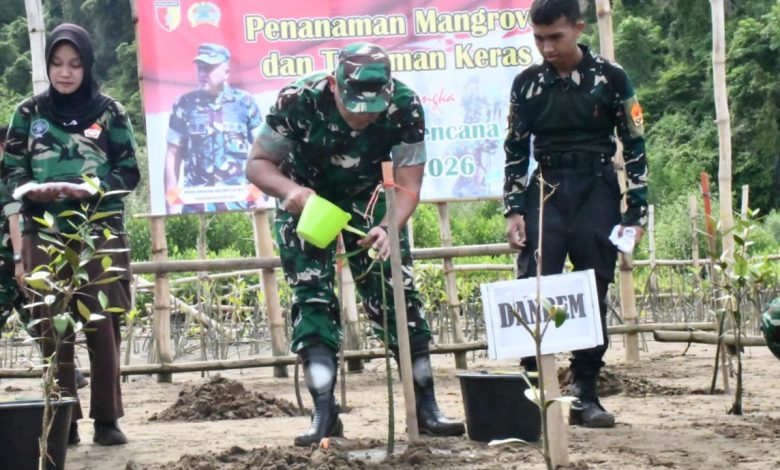 “Total untuk Mangrove kita menanam sebanyak 3.500 bibit, sementara untuk tanaman kerasnya sebanyak 7.300 bibit,” kata Danrem Untoro kepada awak media.