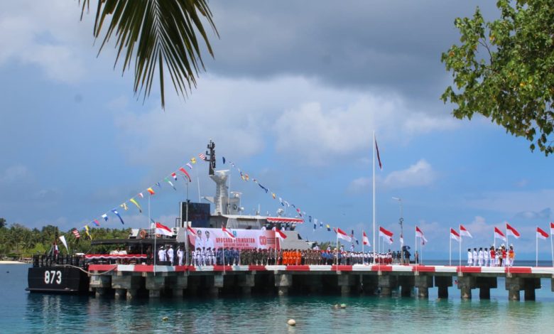 KRI MATABONGSANG-873 DUKUNG UPACARA HUT KE-80 KEMERDEKAAN RI DI PULAU MBROMSI