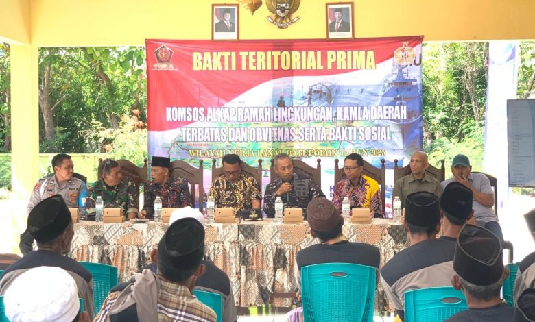 Dengan mengusung tema Sosialisasi Bakti Teritorial Prima ” Komsos Alkap Ramah Lingkungan, Kamla Daerah Terbatas Dan Obvitnas Serta Bakti Sosial ” yang diikutiĀ sekitar ± 50 orang nelayan, diharapkan nantinya para pencari nafkah yang sehari-harinya melalui laut ini dapat memberikan gambaran serta wawasan tentang aturan jenis alat tangkap ramah lingkungan maupun larangan melaksanakan kegiatan di daerah/zona yang menjadi tempat Objek Vital Nasional (Obvitnas).