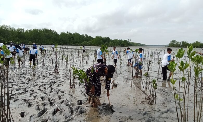 Lanal Bintan Bersama SMA Tunas Bangsa Lagoi Peduli Lingkungan Dengan Menanam 10.000 Pohon Mangrove
