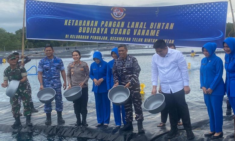 Lanal Bintan Laksanakan Penebaran Benih Udang Vaname Seluas 5 Ha