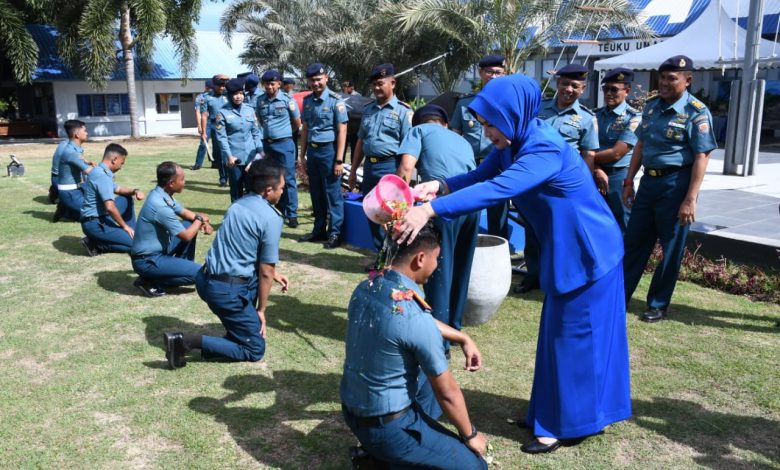 Rangkaian acara ditutup dengan ucapan selamat dari Danlanal beserta jajaran kepada para prajurit yang naik pangkat, diikuti dengan tradisi penyiraman air kembang sebagai bentuk syukur dan kebersamaan.