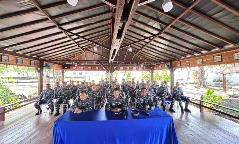 Simeulue || Koranprogresif.id, Danlanal Simeulue Letkol Laut (P) Oyu Mulia Sukmana, S.T., M.T., M.Tr.Opsla., diwakili Palaksa Lanal Simeulue Mayor Laut (T) Firdaus, bersama Perwira Staf, Bintara, Tamtama, dan PNS Lanal Simeulue, turut serta dalam kegiatan Exit Briefing Panglima Komando Armada I Laksamana Muda TNI Dr. Yoos Suryono Hadi, M.Tr.(Han)., M.Tr.Opsla. Kegiatan tersebut dilaksanakan bersama Lantamal dan Lanal dibawah Jajaran Koarmada I, yang berpusat di Markas Komando (Mako) Koarmada I, Tanjung Pinang, Sabtu (15/3/2025).