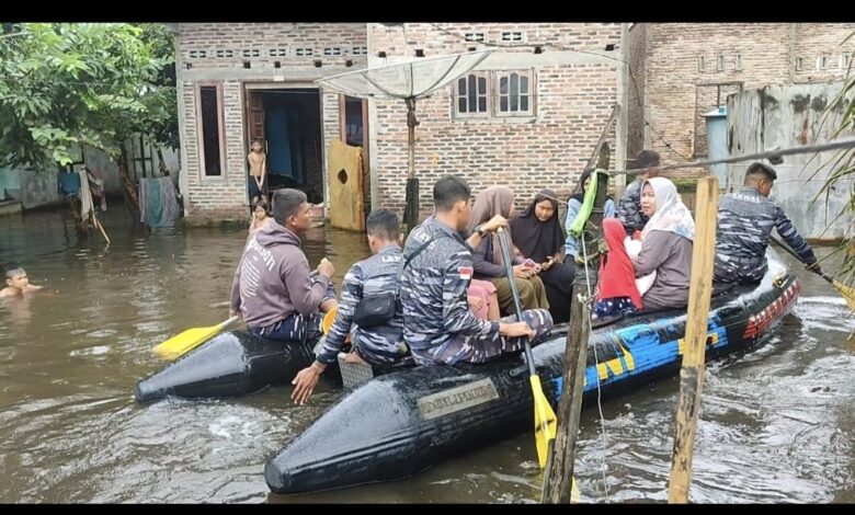 Lanal Tanjung Balai Asahan Bantu Warga Menuju TPS Akibat Banjir
