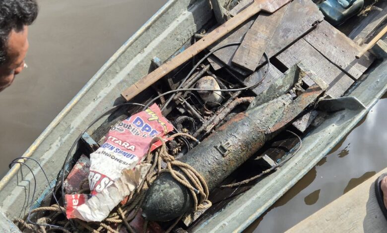 Tanjungbalai || Koranprogresif.id, Lanal Tanjung Balai Asahan berhasil mengamankan penemuan benda mencurigakan yang diduga bom sisa peninggalan Perang Dunia II yang ditemukan oleh 2 (dua) nelayan di Sungai Silau tepatnya disekitar Jembatan Silo, Kota Tanjungbalai, Kamis (2/1/2025).