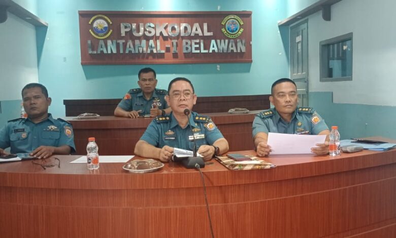 Belawan || Koranprogresif.id, Komandan Pangkalan Utama TNI Angkatan Laut I (Danlantamal I) Brigjen TNI (Mar) Jasiman Purba, S.E., CHRMP., diwakili oleh Kadispotmar Lantamal I Letkol Laut (KH) Drs. James Sagala didampingi Kadisfaslan Lantamal I Letkol Laut (T) Tulus Januarikson Sibarani, S.T., menghadiri Rapat Feasibility Study Pemanfaatan Lahan Tidur TNI AL melalui Vicon, bertempat di Gedung Puskodal Mako Lantamal I, Jalan Serma Hanafiah No. 01 Belawan, Sumatera Utara, Rabu (30/10/2024).