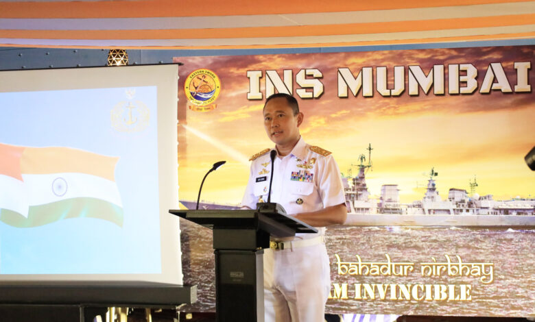 LANTAMAL III JAKARTA HADIRI DECK RECEPTION KAPAL PERANG INDIA INS MUMBAI (D62)