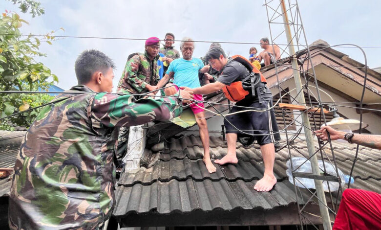 LANTAMAL III JAKARTA TURUN TANGAN BANTU EVAKUASI PENYELAMATAN KORBAN BANJIR DI PERUMAHAN PEKAYON JAYA 2 BEKASI