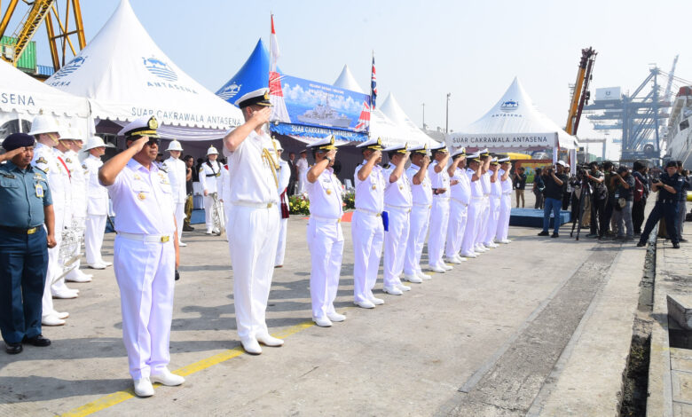 Komandan Lantamal III Laksamana Pertama TNI Uki Prasetia, S.T., M.M. yang diwakili oleh Asisten Intelijen Danlantamal III Kolonel Laut (P) Saut Lagu Jendrit P, S.E., M.Tr.Opsla menyambut kedatangan kapal perang Inggris HMS Richmond F-239 yang dikomandani oleh Commander Richard Kemp di Dermaga 107, Tanjung Priok, Jakarta Utara (25/6).