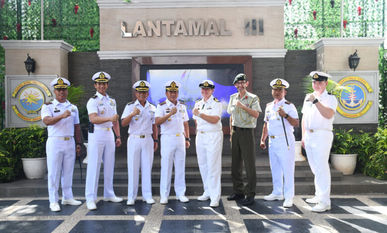 Komandan Lantamal III Jakarta Laksamana Pertama TNI Uki Prasetia, S.T., M.M. diwakili oleh Wakil Komandan (Wadan) Lantamal III Kolonel Laut (P) Ranu Samiaji, S.T., M.H., M.Tr.Opsla. menerima kunjungan kehormatan Komandan Kapal Perang Angkatan Laut New Zealand HMNZS Te Kaha (F-77) di Lobby Mako Lantamal III, Ancol, Jakarta Utara, Senin (30/6).