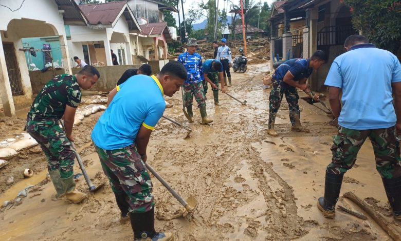 Sejumlah personel Lanud diterjunkan untuk membersihkan rumah-rumah warga, jalan umum, serta fasilitas lingkungan lainnya yang terdampak banjir. Kegiatan dilaksanakan secara terkoordinasi dan terpadu agar kawasan permukiman kembali bersih dan layak digunakan.