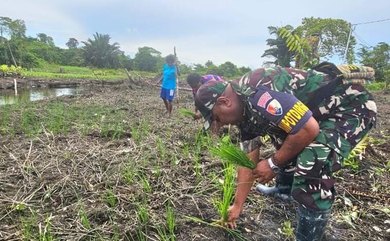 Lanud Yohanis Kapiyau Timika Dukung Ketahanan Pangan, Babinpotdirga Dampingi Petani Suku Kamoro Tanam Padi Gogo