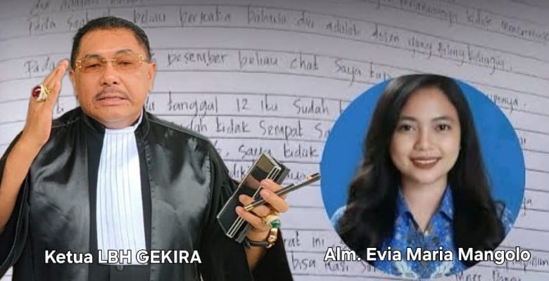 LBH GEKIRA: Negara Tidak Boleh Gagal, Ungkap Kematian Evia Maria Mangolo