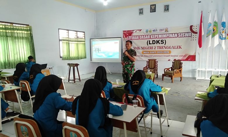 TRENGGALEK || Koranprogresif.id – Upaya TNI dalam memperkuat karakter kebangsaan di kalangan pelajar terus digencarkan melalui program pembinaan teritorial. Hal ini terlihat dalam kegiatan Latihan Dasar Kepemimpinan Sekolah (LDKS) SMKN 2 Trenggalek yang digelar Minggu (16/11/2025).