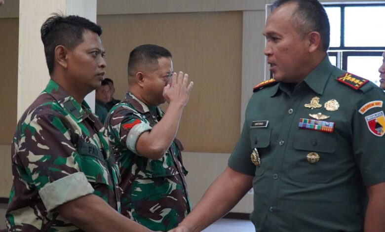MADIUN || Koranprogresif.id – Danrem 081/DSJ, Kolonel Arm Untoro Hariyanto melepas anggota baru untuk masuk ke berbagai satuan di jajarannya, bertempat di Aula Jenderal Sudirman Makorem, Jl. Pahlawan No. 50 Kota Madiun, Rabu (19/3/2025).