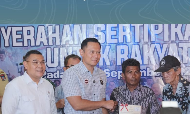 Dalam penyerahan sertipikat kali ini, Wamen Ossy bersama Menteri Koordinator Bidang Infrastruktur dan Pembangunan Kewilayahan (Menko IPK), Agus Harimurti Yudhoyono (AHY) menyerahkan 10 sertipikat hak atas tanah secara simbolis. Secara keseluruhan, sertipikat yang diserahkan ada 129 sertipikat dengan rincian 107 Sertipikat Hak Milik, 18 Sertipikat Hak Pakai, dan 4 sertipikat wakaf. Sertipikat tersebut diperuntukan bagi penerima dari Kabupaten Padang Pariaman, Kota Padang, Kabupaten Pesisir Selatan, Kabupaten Solok, dan Kota Pariaman.