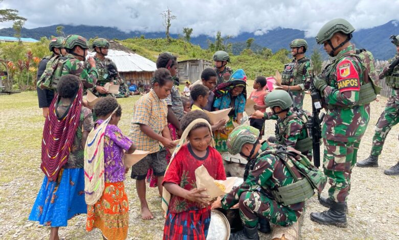 Puncak Jaya – Guna membangun dan mempererat hubungan tali silaturahmi, Satgas Yonif 715/Mtl Pos Tirineri mengajak makan bersama sembari mendengar keluh kesah yang ada di masyarakat kampung Tirineri yang berada di wilayah Distrik Mulia, Puncak Jaya, Papua, Selasa (18/03/2025).