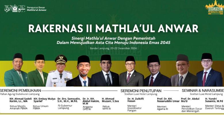 BANTEN || Koranprogresif.id – Mathla’ul Anwar, salah satu Ormas Islam terkemuka di Indonesia yang selama ini bergerak di bidang pendidikan, dakwah dan sosial akan menyelenggarakan Rakernas pada 20 – 22 Desember 2024 di Kota Bandar Lampung.