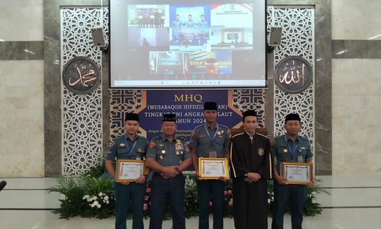Jakarta || Koranprogresif.id, 23 Oktober 2024 – Tentara Nasional Indonesia Angkatan Laut melalui Dinas Pembinaan Mental Angkatan Laut (Disbintalal) mengadakan Musabaqoh Hifdzhil Quran (MHQ) Tingkat TNI Angkatan Laut Tahun 2024 dengan tema “Dengan MHQ Kita Realisasikan Nilai-Nilai Al-Quran Dalam Kehidupan Sehari-hari”, yang dibuka oleh Kepala Dinas Pembinaan Mental TNI Angkatan Laut (Kadisbintalal) Brigjen TNI (Mar) Sandy Muchjidin Latief, S.IP., pada hari Rabu (23/10) bertempat di Masjid Al Arif Denma Mabesal Cilangkap, Jakarta Timur dan juga diikuti secara vicon bagi kotama luar wilayah Jakarta. Dalam pembukaan Musabaqoh Hifdzhil Quran, turut dihadiri Pejabat Utama Mabesal dan Kadisminpers Kolinlamil Letkol Laut (P) Amin Wibowo, S.T bersama Serda Bah Nasrudin yang merupakan prajurit KRI Kambani 971 turut serta dalam lomba Musabaqoh Hifdzhil Quran. Pelaksanaan MHQ Tingkat TNI AL merupakan perwujudan dalam mensukseskan program prioritas Kasal dalam meningkatkan kualitas SDM TNI AL yang unggul dan profesional.