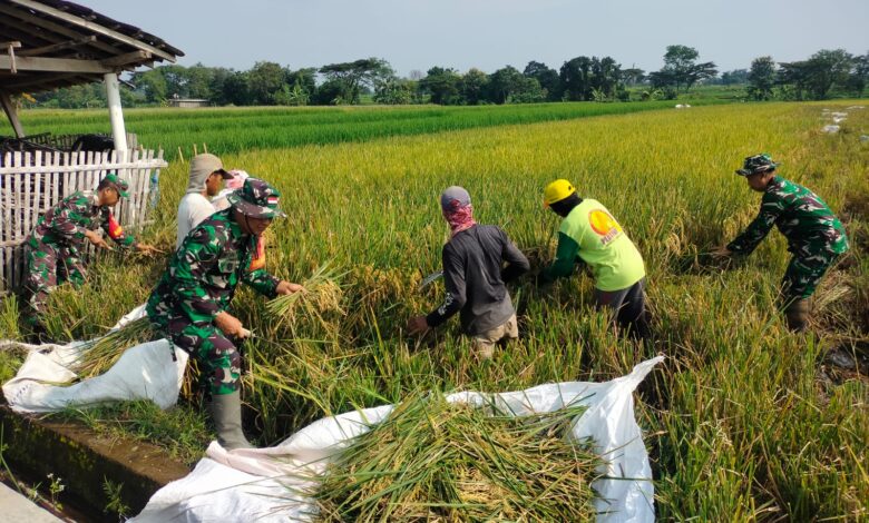 Memanen Padi Di Desa Tulung Klaten, Babinsa Kodim Klaten Turun Bantu Petani