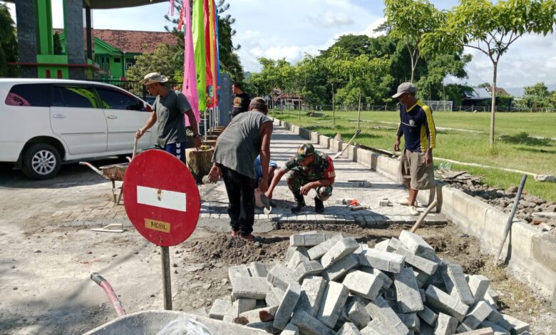 Termasuk hari ini ada kegiatan pemasangan pafing di jalan Desa oleh warga yang juga tak luput dari kehadiran Serka Sudarsono. “Kami bersama warga Desa Turi sedang melakukan pembangunan jalan pemasangan pafing di sepanjang jalan Desa,“ ucapnya.
