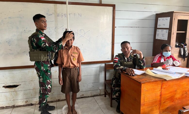 Merauke – Dalam rangka mencerdaskan generasi muda di wilayah perbatasan, personel Satgas Yonif 312/Kala Hitam melaksanakan kegiatan edukasi di SD Inpres Bupul 1, Desa Sipias, Distrik Eligobel, Kabupaten Merauke, Papua Selatan, pada Sabtu (11/1/2025). Dipimpin oleh Danton Kes Pos Kout Bupul 1, Letda Ckm Duryat, kegiatan ini mengusung tema wawasan kebangsaan serta pemeriksaan berat badan (BB) dan tinggi badan (TB) murid-murid.