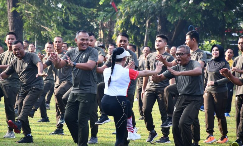 Ratusan personel Korem 081/DSJ dan Satuan Dinas Jajaran (Satdisjan) Madiun itu menyatu dalam harmoni kebugaran dan kebersamaan.