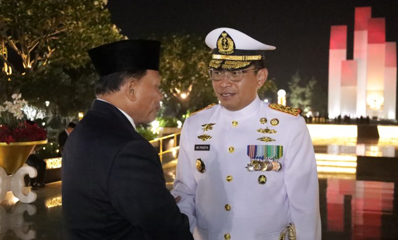 Komandan Kodaeral III Laksamana Muda TNI Uki Prasetia, S.T., M.M. menghadiri Apel Kehormatan dan Renungan Suci di Taman Makam Pahlawan Nasional Utama (TMPNU) Kalibata, Jakarat Selatan, Minggu (17/8).