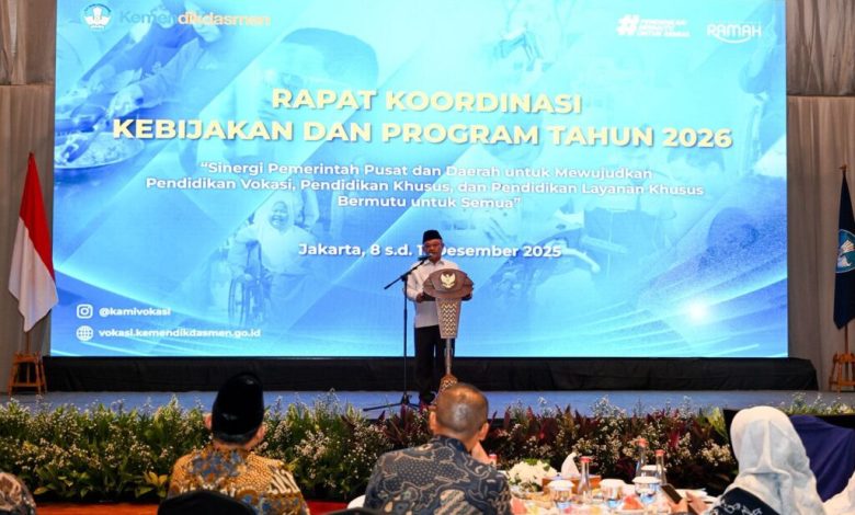 Hal tersebut diungkapkannya saat membuka Rapat Koordinasi (Rakor) Kebijakan dan Program Direktorat Jenderal Pendidikan Vokasi, Pendidikan Khusus dan Pendidikan Layanan Khusus (PKPLK) Tahun 2026 di Jakarta yang dihadiri kepala dinas pendidikan, pejabat daerah, serta 806 peserta dari seluruh Indonesia, kemarin.