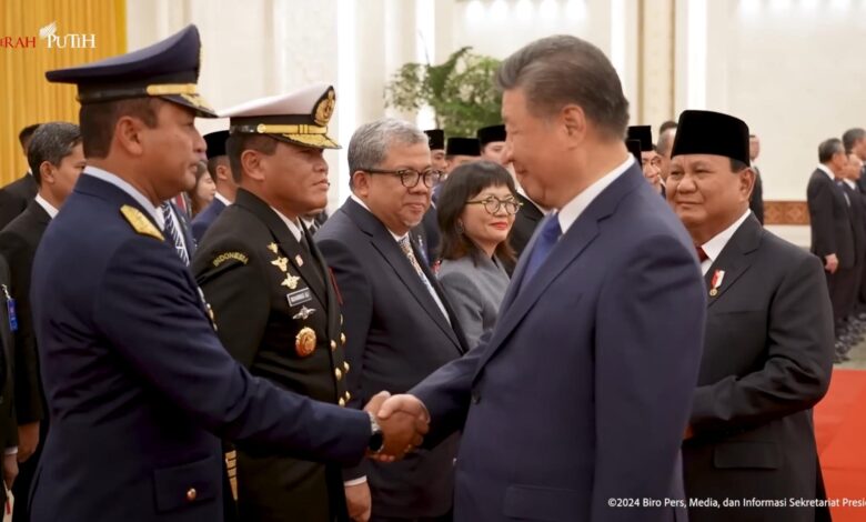 Beijing || Koranprogresif.id, Kasau Marsekal TNI M. Tonny Harjono, S.E., M.M., beserta delegasi Indonesia lainnya diperkenalkan oleh Presiden RI Jenderal TNI (Purn.) Prabowo Subianto kepada Presiden RRT Xi Jinping. Kasau juga turut bersalaman dengan Presiden Xi Jinping.