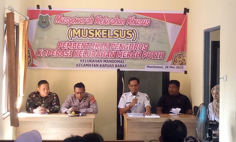 KUALA KAPUAS ll Koranprogresif.id – Kelurahan Mandomai, Kecamatan Kapuas Barat, Kabupaten Kapuas, Provinsi Kalteng menggelar Musyawarah Kelurahan Khusus untuk pembentukan Koperasi Desa Merah Putih, sebagai bagian dari pelaksanaan lstruksi Presiden Nomor 9 Tahun 2025 tentang percepatan Koperasi Desa Merah Putih, Rabu (28/5/2025).