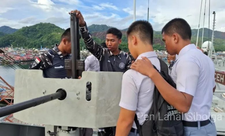 Sibolga,- Dalam rangka memperkenalkan dunia kemaritiman kepada generasi muda, KRI Banda Aceh-593 yang tengah sandar di Pelabuhan Sibolga melaksanakan kegiatan Open Ship dengan menerima kunjungan siswa-siswi SMA Negeri 1 Matauli Pandan, bertempat di Pelabuhan Pelindo, Sibolga, Selasa (02/09/2025).