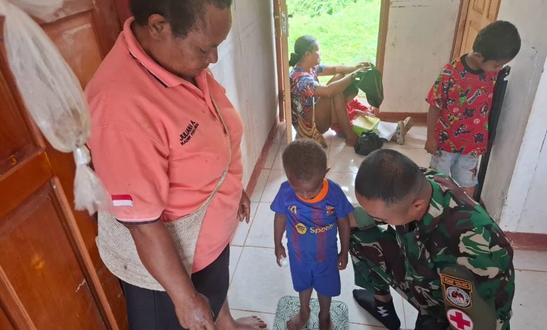 Boven Digoel – Personel Tentara Nasional Indonesia (TNI) Satgas Pamtas RI-PNG Yonif 126 Kalacakti bersama Puskesmas Kombut melaksanakan kegiatan Puskesmas Keliling (Pusling) di wilayah Amuan, Distrik Kombut, sebagai bagian dari upaya optimalisasi akses dan pemerataan pelayanan kesehatan dasar bagi masyarakat di daerah terpencil, Selasa (9/9/2025).