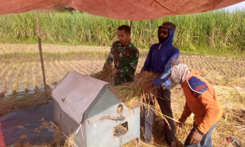 Panen Padi Berlangsung, Anggota TNI Kodim Ponorogo Ajak Petani Jual Gabah ke Bulog