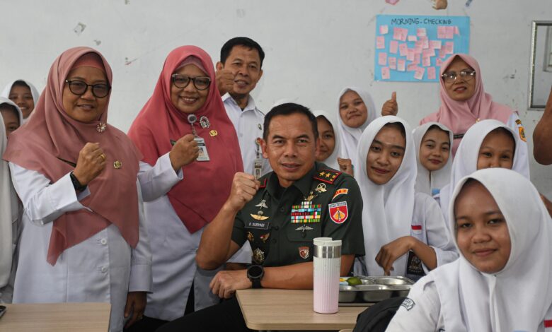 Sembari menyapa siswa-siswi yang antusias menyambutnya. Pangdam menyempatkan diri melihat langsung proses penyajian makanan, berinteraksi hangat dengan para siswa, dan menyuntikkan semangat untuk tidak menyerah dalam menggapai cita-cita.