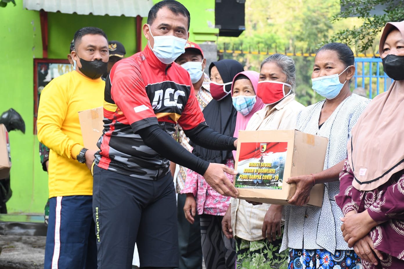 Sebelum melakukan gowesnya, mereka terlebih dulu menggelar aksi sosialnya dengan memberikan bantuan kepada masyarakat kurang mampu di sekitar obyek wisata Roro Kuning.