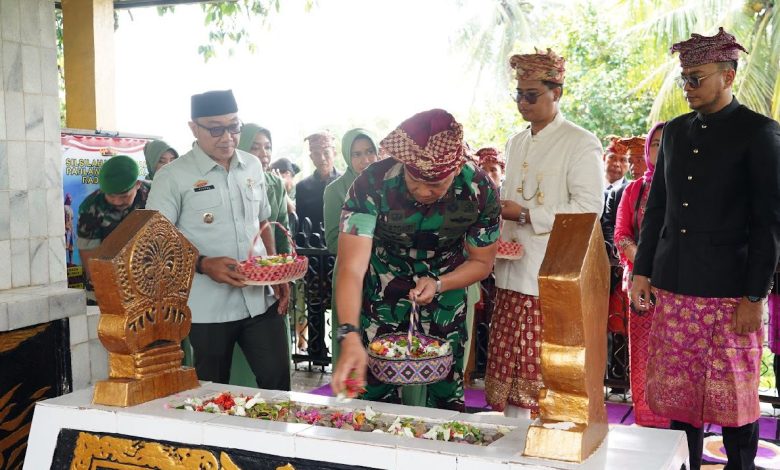 Lampung Selatan – Panglima Daerah Militer (Pangdam) XXI/Radin Inten, Mayjen TNI Kristomei Sianturi didampingi Ketua Persit KCK Daerah XXI/Radin Inten, Ibu Asti Kristomei Sianturi, hari ini melaksanakan ziarah ke Makam Pahlawan Nasional Radin Inten II yang terletak di Desa Gedung Harta, Kecamatan Penengahan, Kabupaten Lampung Selatan.