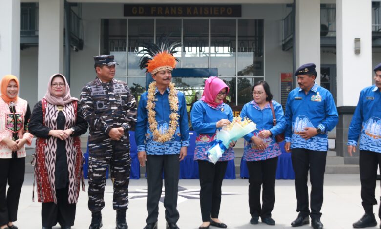 Setibanya di Mako Guskamla Koarmada III, rombongan Ketua Umum PPAL disambut dengan tarian khas Biak serta prosesi pengalungan bunga sebagai tanda penghormatan.
