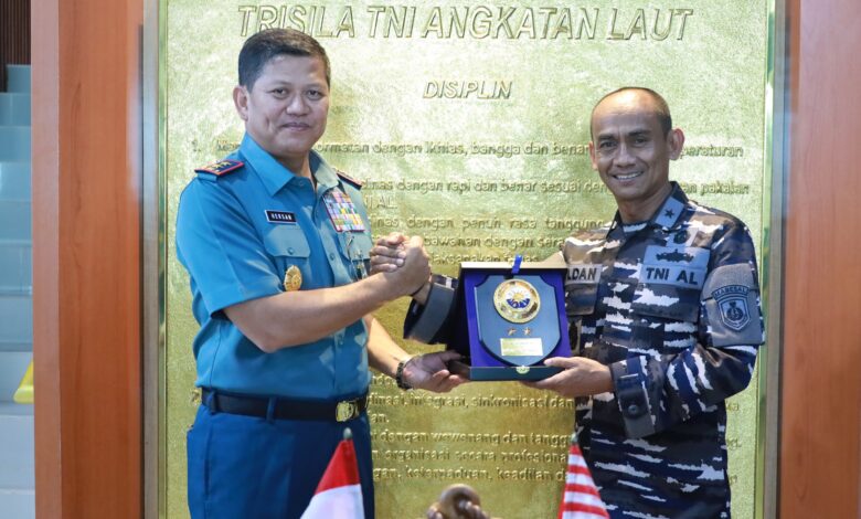 Sorong || Koranprogresif.id, Panglima Komando Armada III (Pangkoarmada III) Laksamana Muda TNI Hersan, S.H., M.Si., menerima kunjungan kerja Kepala Dinas Fasilitas Pangkalan TNI Angkatan Laut (Kadisfaslanal) Laksamana Pertama TNI Jusep Wildan, S.T., M.Tr.Opsla., bertempat di Pasifik Room, Markas Komando Armada III, Katapop, Sorong, Senin (28/4/2025).