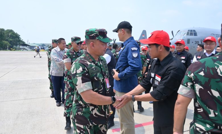 Jakarta || Koranprogresif.id, Pangkodau I Marsda TNI Muzafar, S.Sos., M.M., mendampingi Kasau Marsekal TNI M. Tonny Harjono, S.E., M.M., beserta para pejabat TNI dan sipil lainnya, sambutan kedatangan Satgas Garuda Merah Putih II di Baseops Lanud Halim Perdanakusuma. (Sabtu, 13-9-2025).