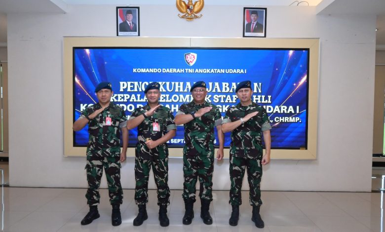 Jakarta-Panglima Komando Daerah TNI Angkatan Udara I (Pangkodau I) Marsekal Muda TNI Muzafar, S.Sos., M.M., Pimpin Pengukuhan Jabatan Kepala Kelompok Staf Ahli Komando Daerah TNI Angkatan Udara I, yang berlangsung di Lobby Makodau I, Jumat (12/9/25).