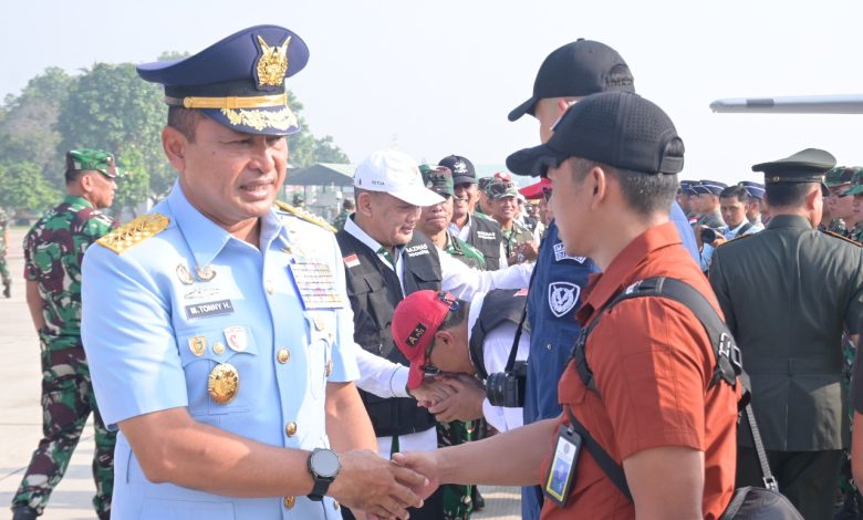 Panglima Komando Operasi Udara I (Pangkoopsud I) Marsda TNI Muzafar, S.Sos., M.M., turut menghadiri upacara pemberangkatan Satgas Garuda Merah Putih II dalam misi airdrop Gaza dalam rangka pengirim bantuan kemanusiaan bertempat di Apron Gedung Pandawa Baseops Lanud Halim, Jakarta Rabu (13/8/25).