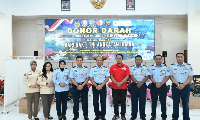 Jakarta || Koranprogresif.id, Panglima Koops Udara I Marsda TNI Muzafar, S.Sos., M.M., ajak warga Koops Udara I donor darah untuk membantu masyarakat yang membutuhkan dalam rangka memperingati Hari Bakti TNI Angkatan Udara ke-78, karena setes darah sangat berarti, tempat di Aula Iskandar Kosek IKN Halim Perdanakusuma Jakarta, Rabu (23/7/25).